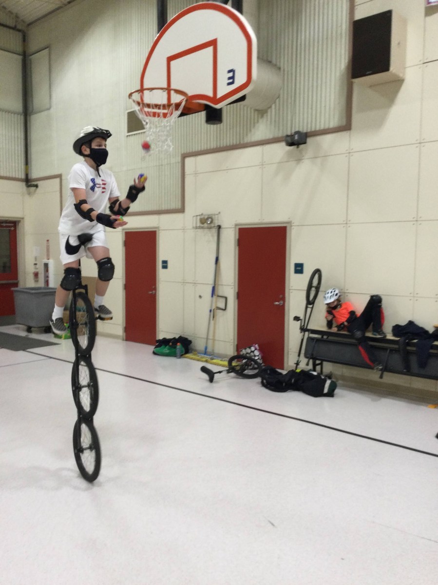 A performing circus arts unicycle group from Topsham, Maine