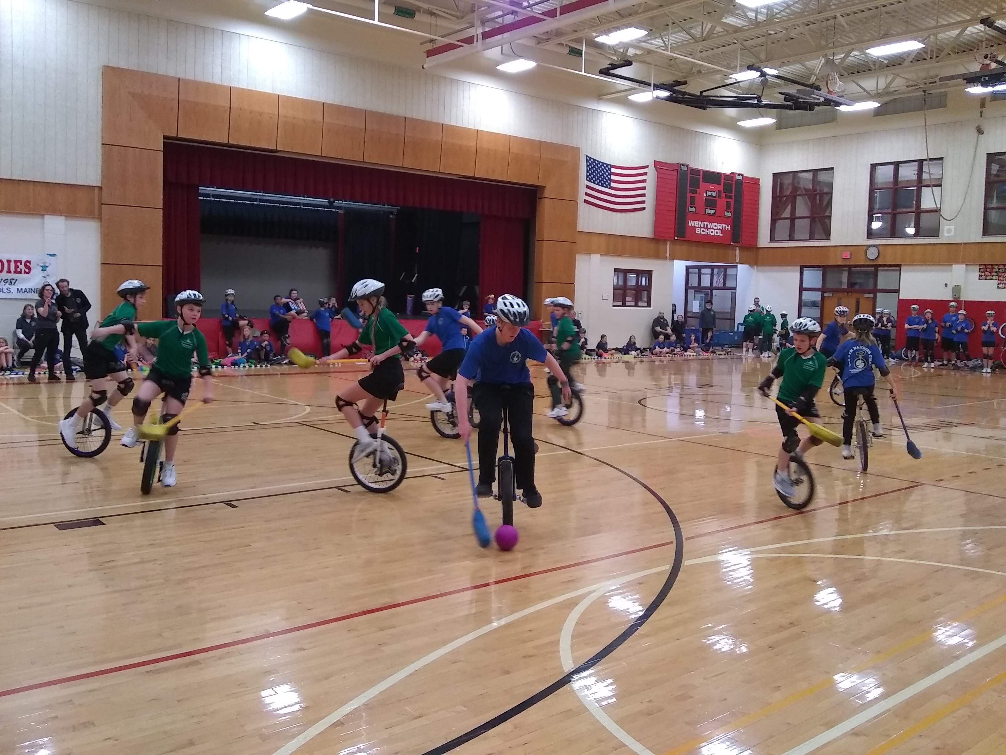 A performing circus arts unicycle group from Topsham, Maine
